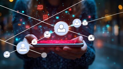 Woman Using Smartphone With Data Overlay Digital Concept Videos