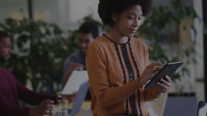 Woman Using Tablet Interface With Digital Data Overlay Videos