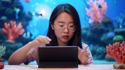 Woman Using Tablet Showing Digital World Connections Videos