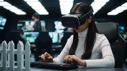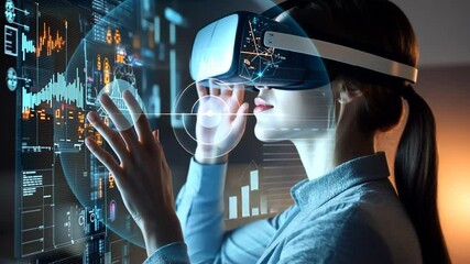 Woman Using Vr Headset Analyzing Data With Augmented Reality Interface Videos