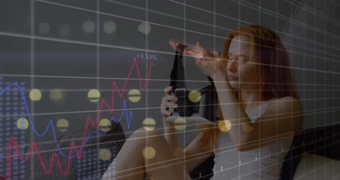 Woman Using Vr Headset With Financial Data Overlay Videos
