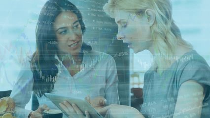 Women Collaborating Over Tablet With Data Visualization Overlay Videos