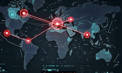 World Map Overlay With Data Points On Futuristic Interface Videos