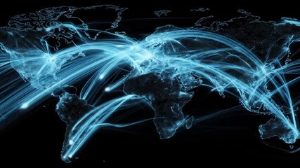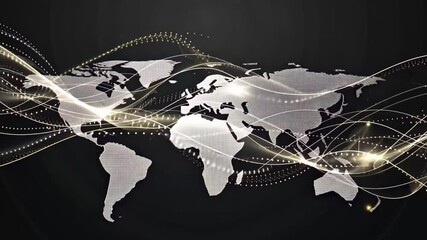 World Map With Digital Data Flow On Black Background Videos