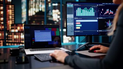 Young Business Creative Analyzing Financial Data On Computer Videos