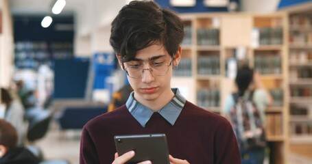 Young Man Using Digital Tablet In Library Videos