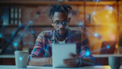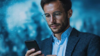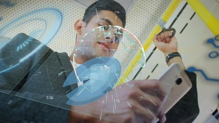 Young Man Using Smartphone With Digital Data Overlay Videos
