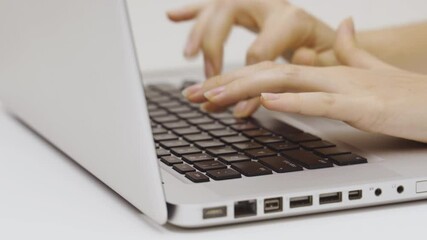 Young Professional Female Using Laptop White Background Videos