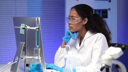 Young Scientist Analyzing Data On Computer In Laboratory Videos