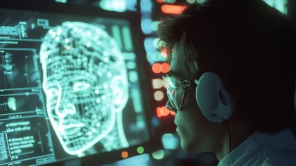 Young Scientist Analyzing Data With Virtual Interface Videos