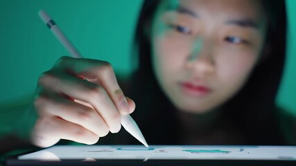 Young Student Using Tablet For Digital Learning Videos