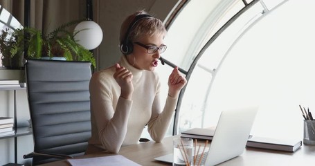 Young Woman Using Headset For Remote Communication Videos