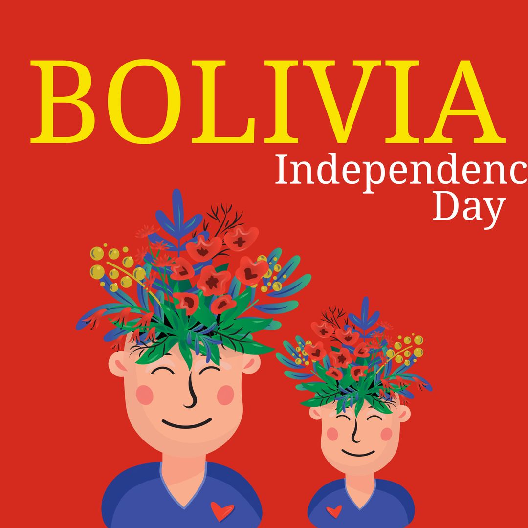 Design shows people with floral wreaths, representing Bolivia Independence Day celebrations. Colors suggest national pride. Great for event promotions, cultural studies, or festive social media content.
