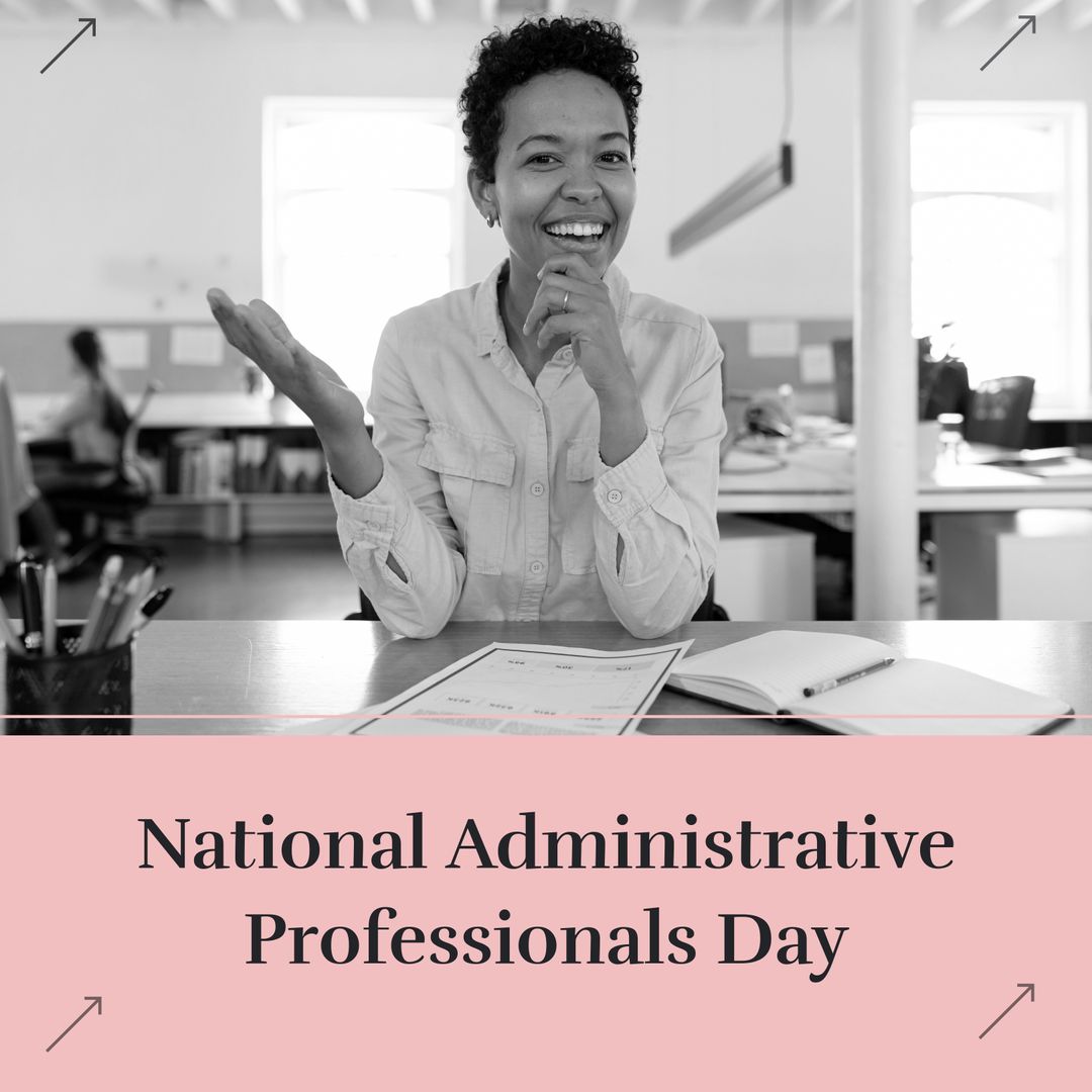 Celebrating Administrative Professionals Day with Smiling Businesswoman in Office Template