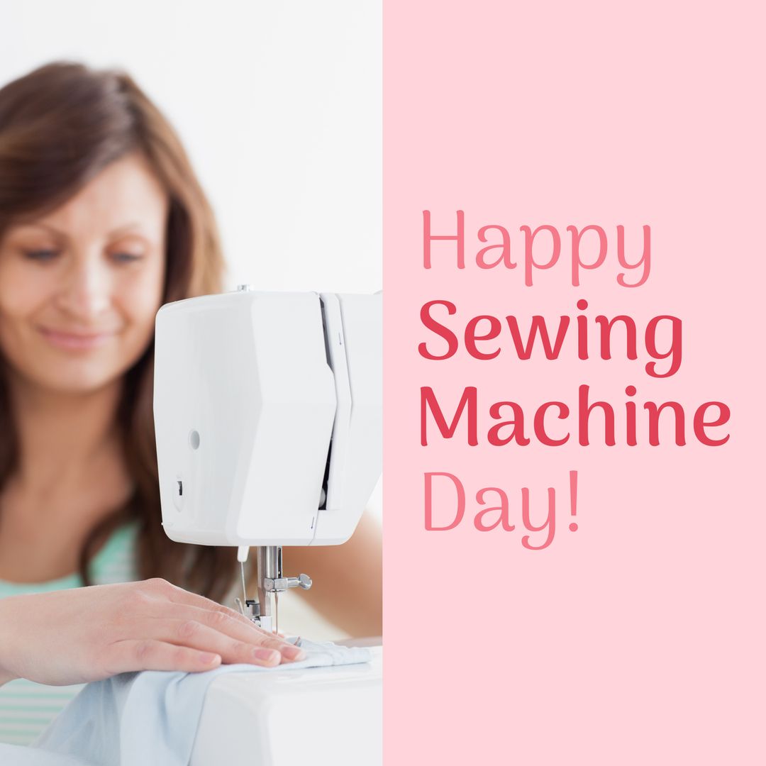 Celebration of Sewing Machine Day with Enthusiastic Woman Sewing Template