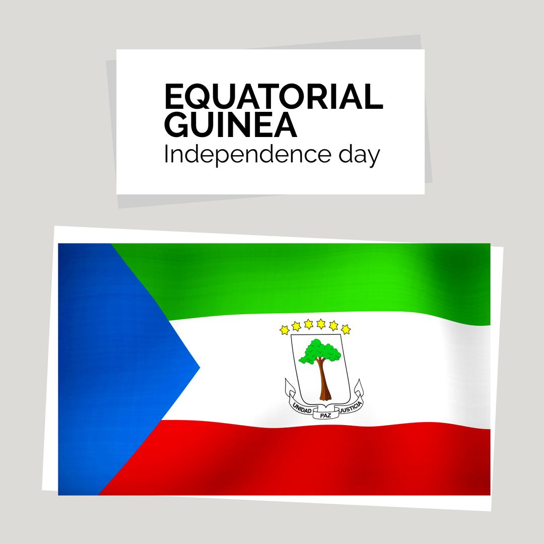 Illustration features the Equatorial Guinea flag and text marking Independence Day, ideal for use in educational materials or online articles about national holidays. Great for teaching about African countries' milestones, promoting cultural awareness and historical reflections. Perfect for social media posts or awareness campaigns celebrating Equatorial Guinea's heritage and independence.