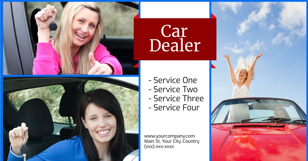 Excited Customers With New Cars at Dealership Template