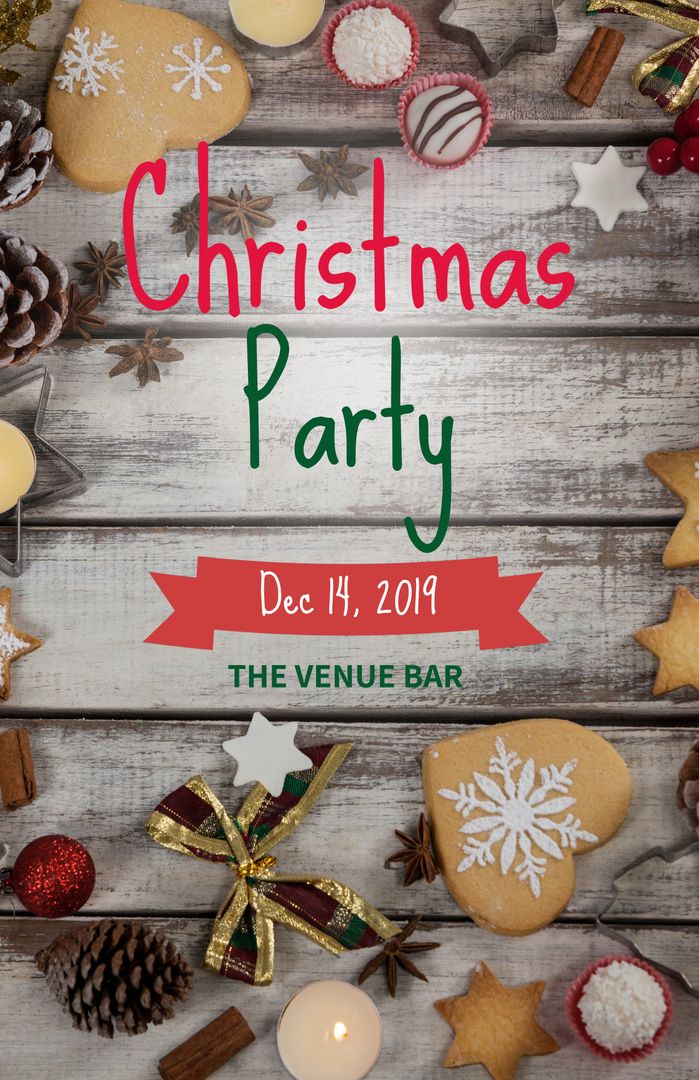 Festive Christmas Party Announcement with Cookies and Decorations Template