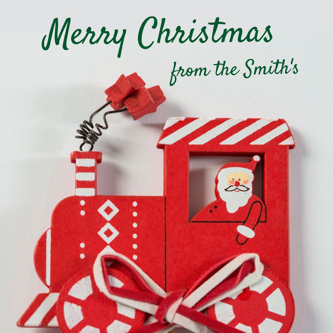Festive Red Christmas Train with Santa for Holiday Greetings Template