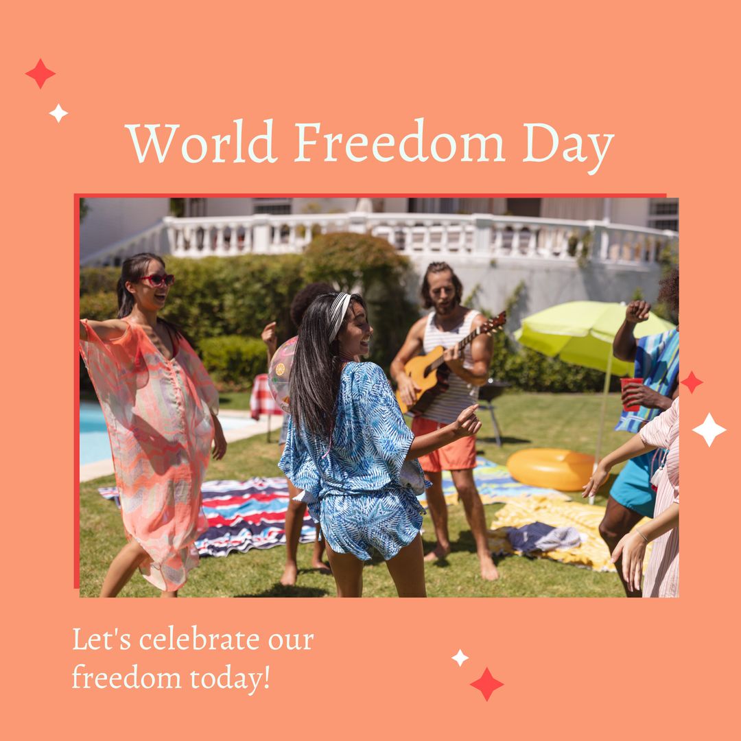 Friends Celebrating World Freedom Day with Music and Dance Template