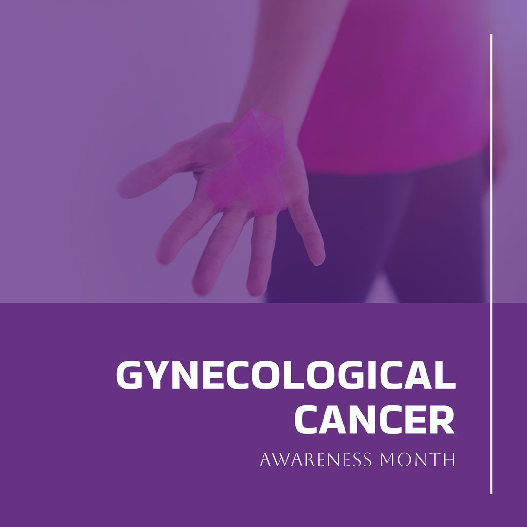 The image features a woman's hand holding a purple ribbon, symbolizing awareness for gynecological cancer. Often used in preventative healthcare campaigns, hospital awareness programs, and women's health seminars. The design is suited for educational brochures, websites focusing on cancers affecting women, and social media platforms promoting health awareness and early detection initiatives.