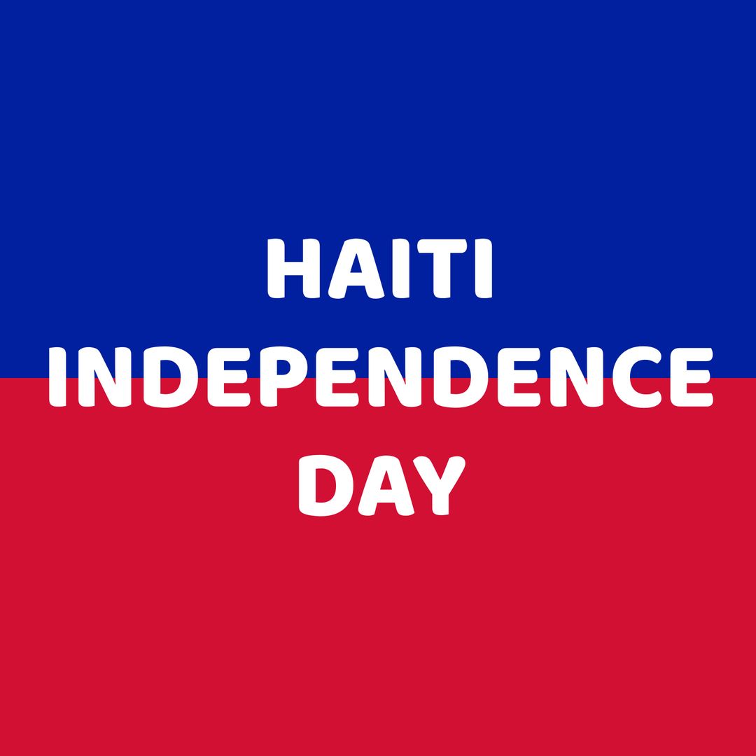 Background with text Haiti Independence Day on traditional red and blue colors highlights national pride. Suitable for advertisements, social media posts, digital invitations or educational materials celebrating Haitian history and culture.