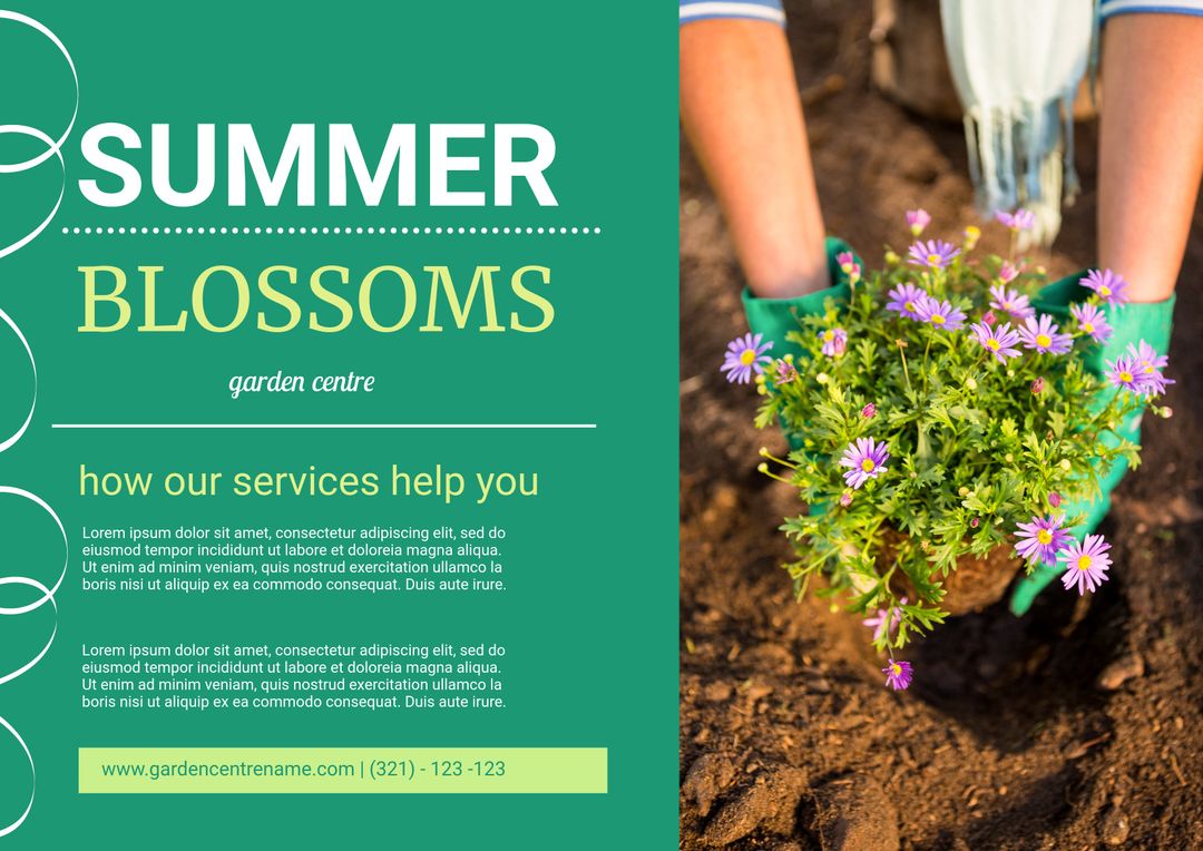 Hands Holding Vibrant Bouquet of Summer Blossoms Promoting Garden Center Template