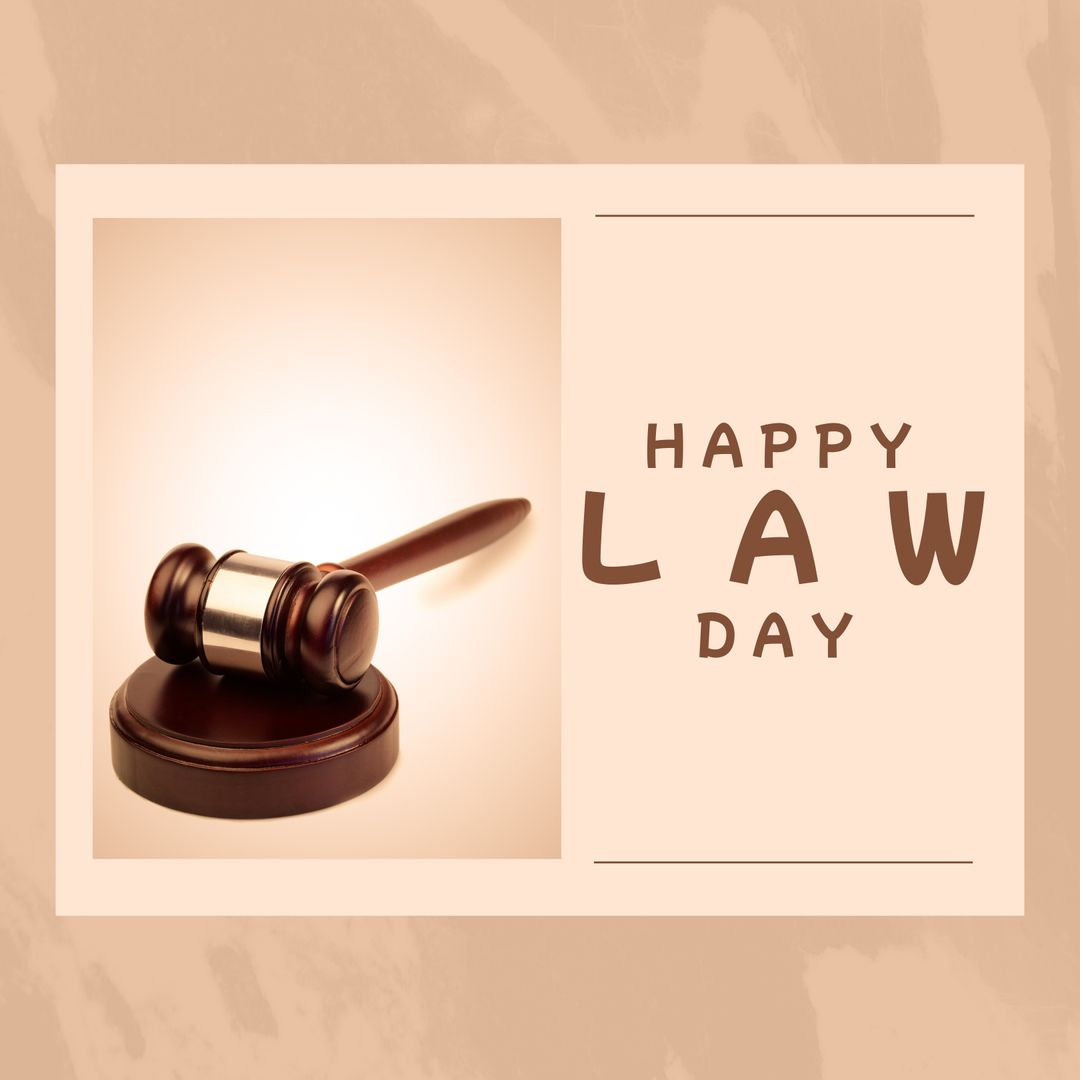 Card design featuring a judicial gavel on a beige background expresses the importance of Law Day, honoring legal professions, celebrations, or justice-related events. Suitable for promotional materials for law firms, legal seminars, and educational campaigns on legality.