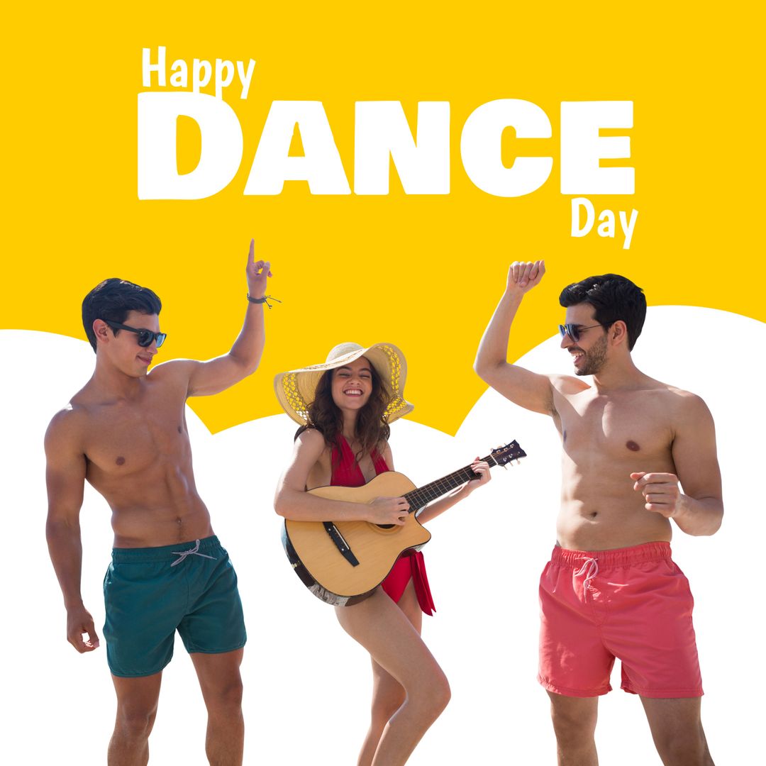 Joyful Friends Dancing with Guitar for Dance Day Celebration Template