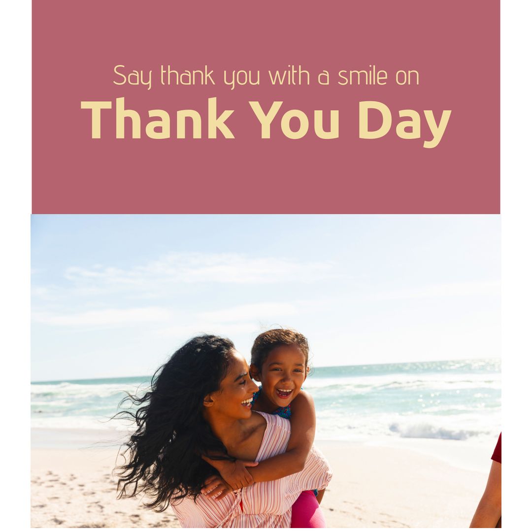 Joyful Mother and Daughter Celebrating Thank You Day at Beach Template