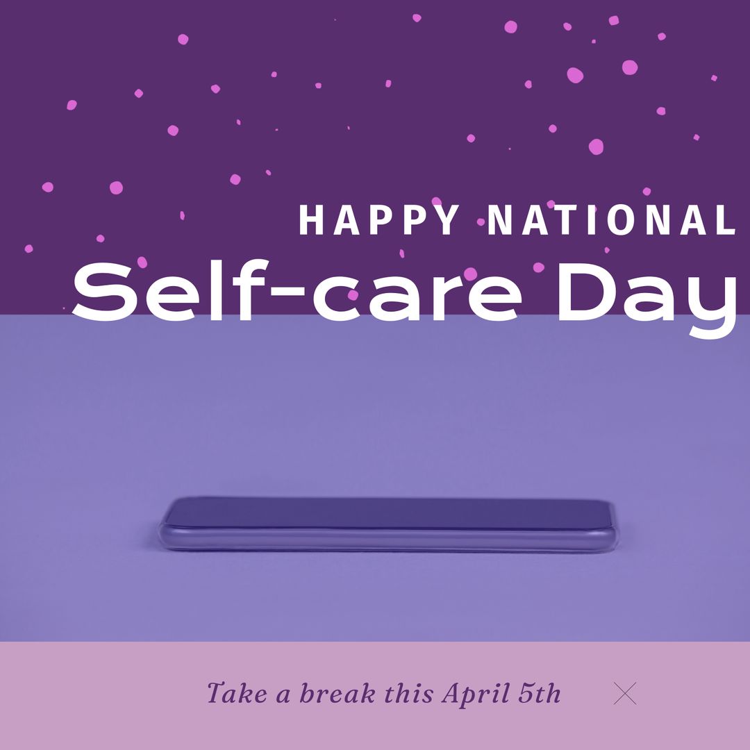 National Self-Care Day Smartphone Reminder on Purple Background Template
