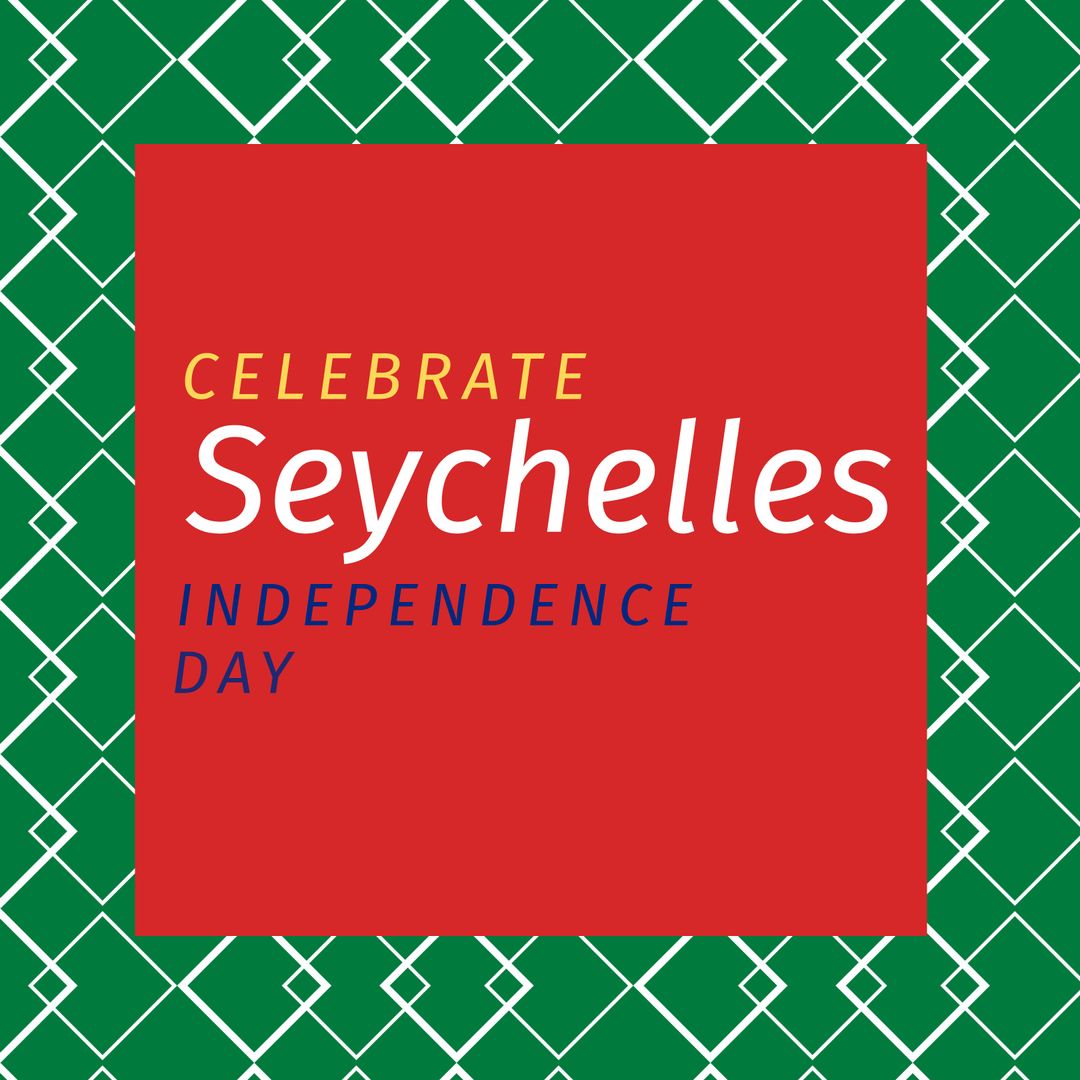 Colorful graphic displaying message for Seychelles Independence Day on red and green background. Great for creating posters, flyers, social media posts, or event invitations celebrating Seychellois independence and cultural identity.