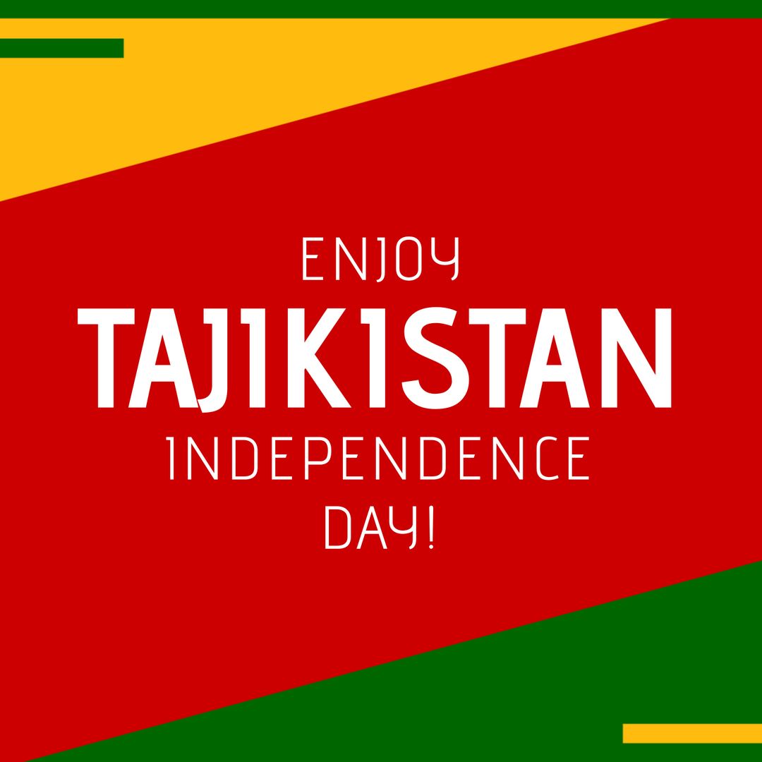 Bright and festive graphic highlighting Tajikistan's Independence Day with bold letters and national colors. Perfect for promotional materials, social media posts, and educational resources celebrating national pride and unity.