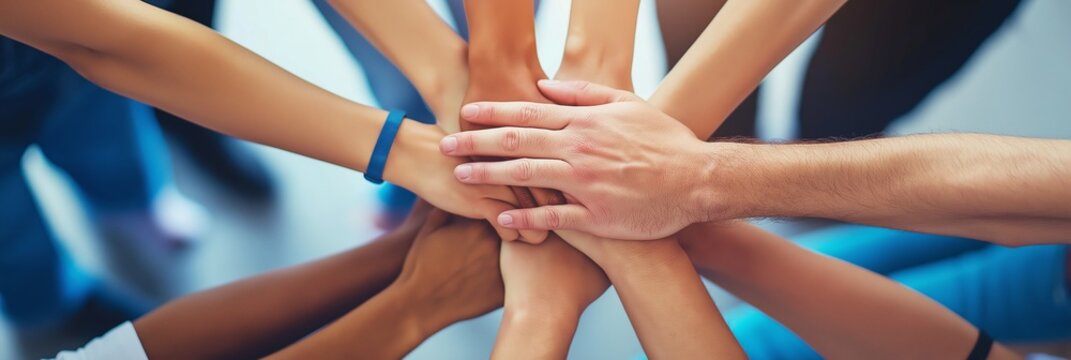 Hands placed over each other symbolizing unity, collaboration, and commitment to make an impact. Perfect for campaigns promoting teamwork, unity, and social causes. Useful for brochures, websites, or social media posts aiming to inspire community involvement and eco-awareness.