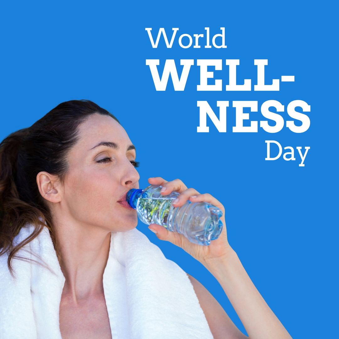 Woman Beverage Appreciation on World Wellness Day Celebration Template