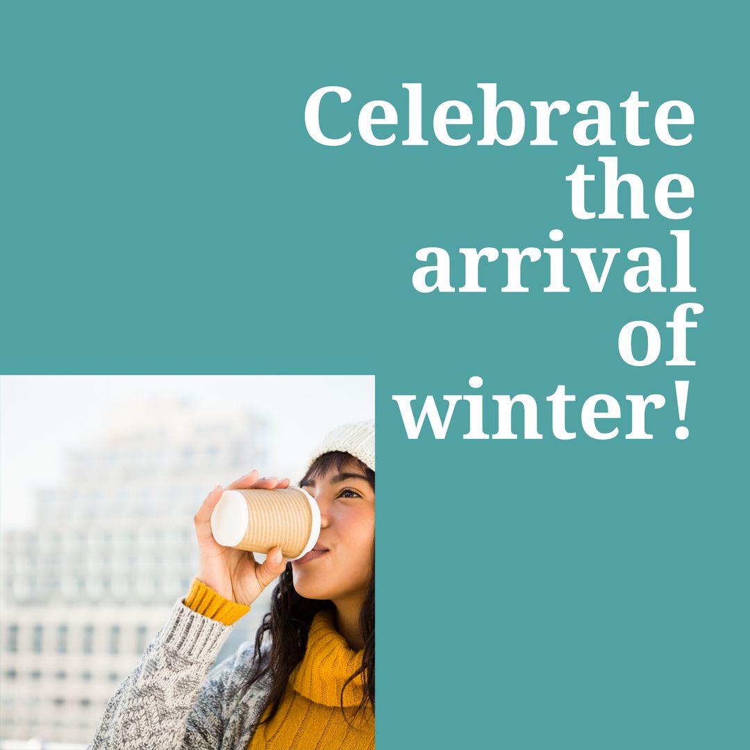 Woman Celebrating Winter in Cozy Attire with Hot Drink Template
