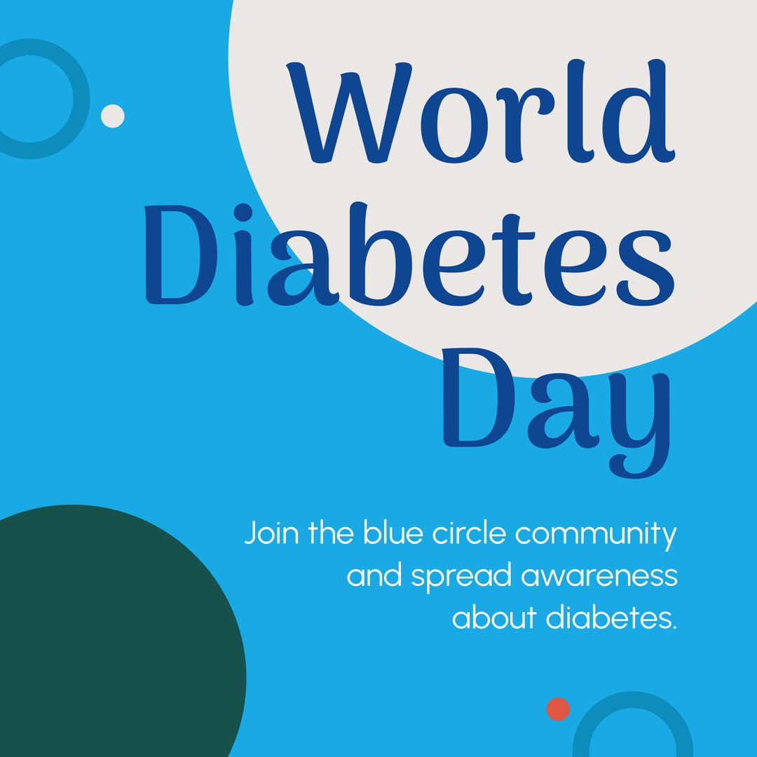 Blue circle design illustrating World Diabetes Day highlights importance of diabetes awareness and education. Suitable for promoting public health campaigns, educational materials, social media posts promoting awareness and community engagement activities.
