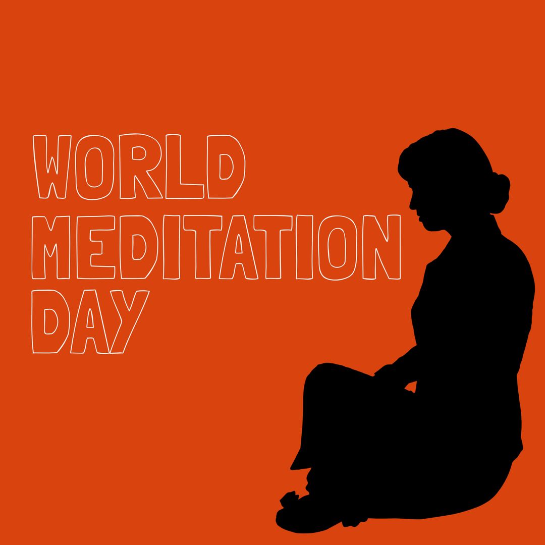 - World Meditation Day Poster with Woman Meditating in Silhouette