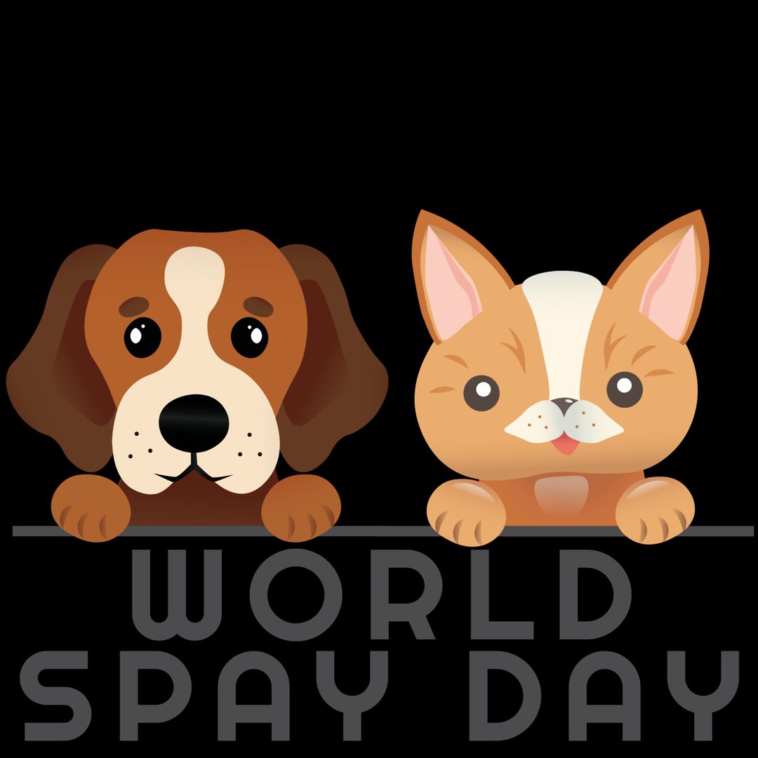 Illustration promoting World Spay Day showcasing an adorable cat and dog duo. This is ideal for veterinary campaigns, spaying and neutering awareness initiatives, pet adoption events, and animal welfare promotional materials. It suits themes related to responsible pet ownership and animal advocacy.