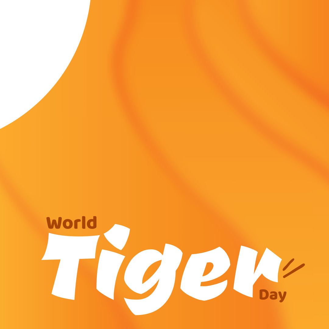 Vibrant design featuring World Tiger Day text against bold orange background. Ideal for promoting awareness and conservation efforts. Great for use in campaigns, educational materials, and social media.