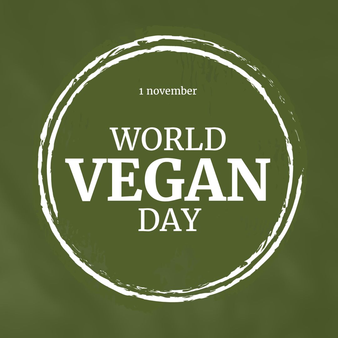 Illustration highlighting World Vegan Day on a textured green background. Useful for promoting awareness campaigns, social media posts, or event invitations about veganism and healthy living. Suitable for designs suggesting organic lifestyle support and celebration.