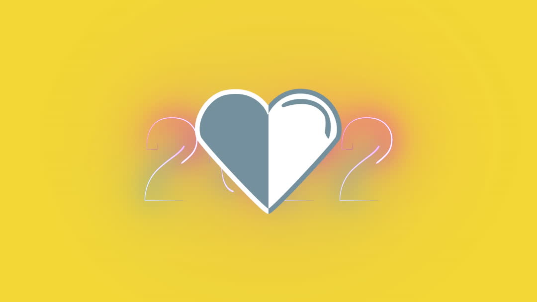 This digital design featuring moving heart icon and '2022' text against bright yellow background conveys positivity and love. Ideal for various digital content such as blogs, social media posts, or new year retrospectives that emphasize themes of positivity, sentiment, and yearly milestones. Also suited for graphic projects involving calendars, greeting cards, or motivational material that addresses reflections or aspirations from the year 2022.