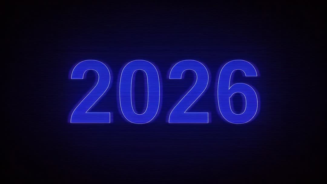 AI Generated Video. Looping neon countdown showing bold 2026 digits glowing in electric blue over subtle horizontal scanline texture with faint red rim accent. Motion graphic evoking retro-futuristic cyberpunk mood and vintage VHS feel while maintaining clean modern typography. Useful for new year promos, event openers, tech conference intros, website hero banners, streaming channel overlays, and social media reels. Easy to customize by overlaying logo, adding countdown timer, adjusting color grading, or syncing with electronic soundtrack. High-contrast composition providing strong focal point for titles, trailers, presentations, and digital signage.