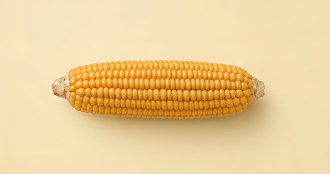 AI Generated Video. Ear of corn rotating against a pale yellow background showcases its natural texture and vibrant color. Perfect for content about fresh produce, farming, or minimalistic designs. Ideal for agronomy blogs, health food promotions, or educational material highlighting crop cultivation or healthy eating.