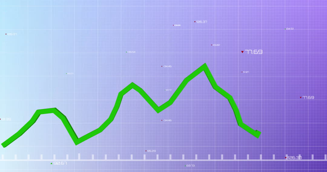 Illustration featuring an animated financial graph against a blue background with changing data values in a grid-like pattern. Its dynamic visualization is ideal for presenting concepts in economics, investment reports, strategic decision-making, and business profit analysis.