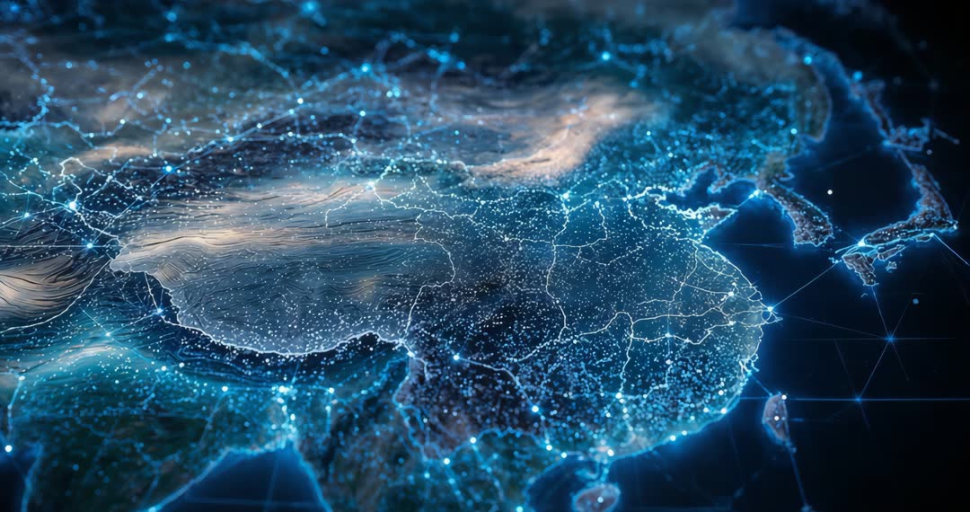 AI Generated Image. This depiction shows a 3D representation of the Asian continent with illuminated nodes highlighting borders and major areas, enveloped by drifting weather patterns and cosmic ambiance. It highlights interconnectivity, digital progress, and data network visualization. Ideal for use in technology editorial content, global business presentations, and digital science applications, offering a futuristic visual emphasizing global connectivity and regional links in a high-tech aesthetic.