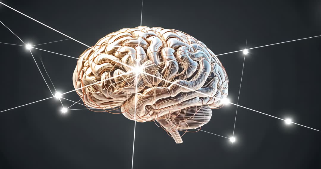 AI Generated Image. This frame showcases a rotating CGI brain model with glowing network nodes, resembling neural pathways pulsing in harmony. Ideal for use in AI and technology presentations, educational materials on neuroscience, and visual metaphors for digital and virtual intelligence in corporate videos or future technology exposés.