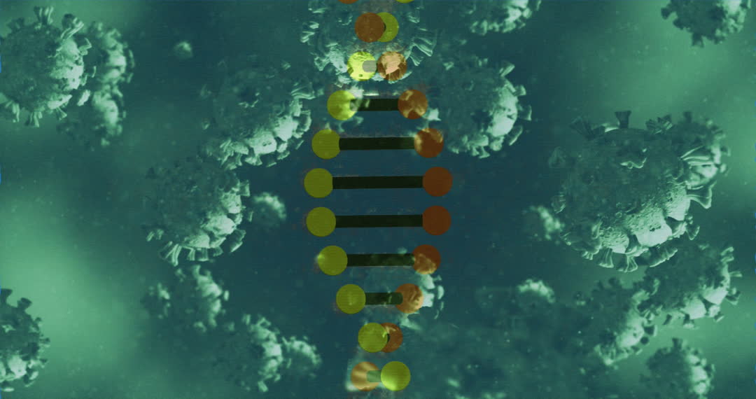 - 3D DNA Model with Virus Background in Futuristic Digital Interface