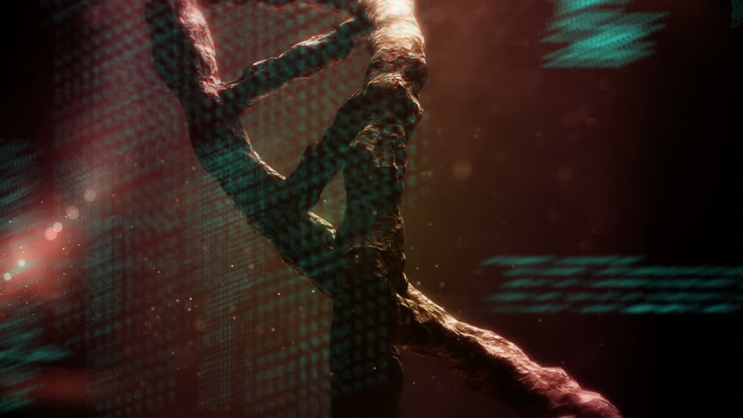 3D DNA Strand with Digital Data Overlay in Motion Video