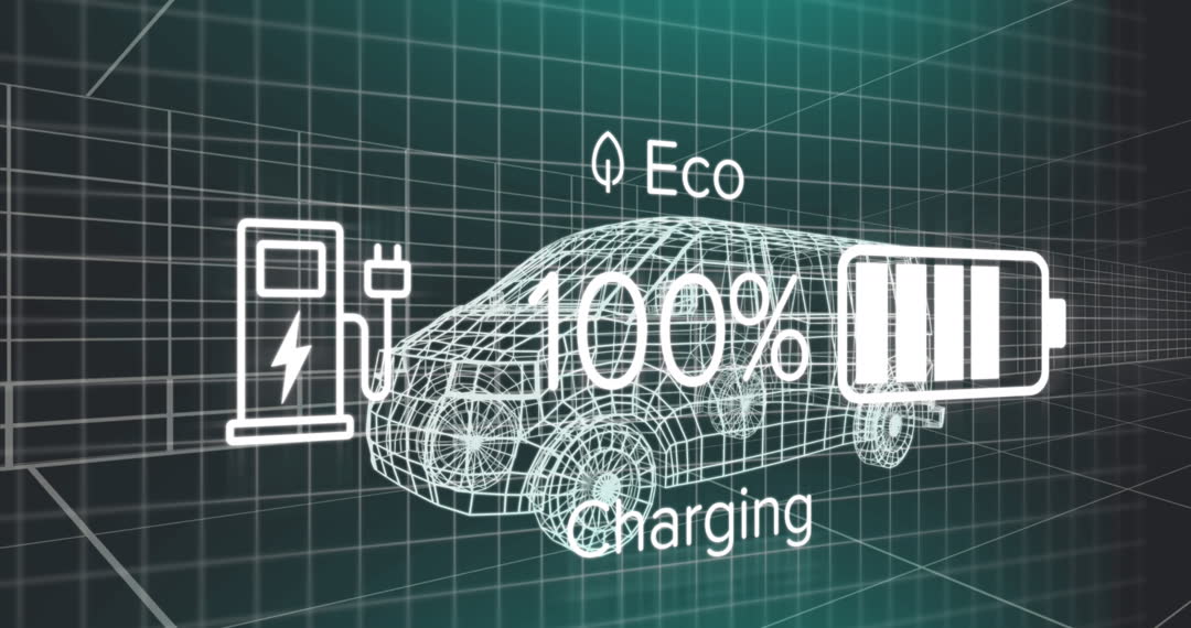 Dynamic animation portraying a 3D model of an electric van with a vivid charging interface, fitting perfectly within themes of eco-friendliness and sustainable energy solutions. Suited for use in presentations focusing on electric vehicle promotion, green technology education, or clean energy awareness campaigns. Shamelessly embrace innovation by incorporating it into any futuristic thematic media.